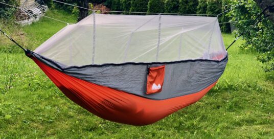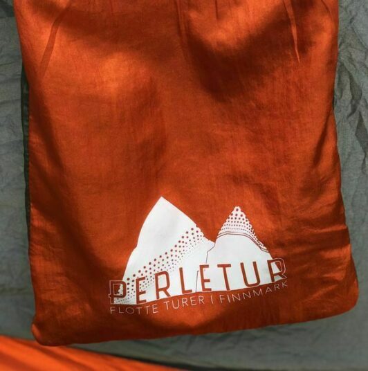 Hengekøye med myggnetting og oppheng med Perletur-design.